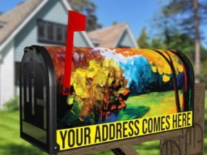 Dressing up your rural farm mailbox with the October Forest #3 mailbox cover is an easy way to convert it into a unique and special item. These covers require a smooth surface, so they are compatible with rural farm mailboxes that do not have any embossed decorations or signs. Magnetic mailbox covers work with steel boxes only, while self-adhesive vinyl covers are available for aluminum, plastic and steel boxes. If your mailbox is not compatible with these covers, you can purchase a brand new mailbox with a preinstalled cover. Additionally, you have the option to create a custom rural farm mailbox cover with your own pictures, name, street number, etc.