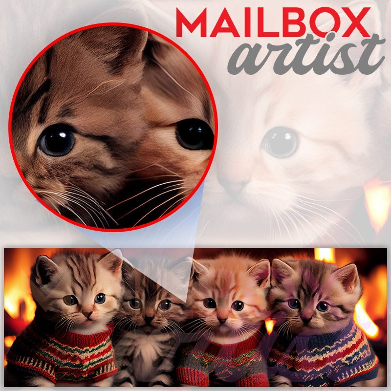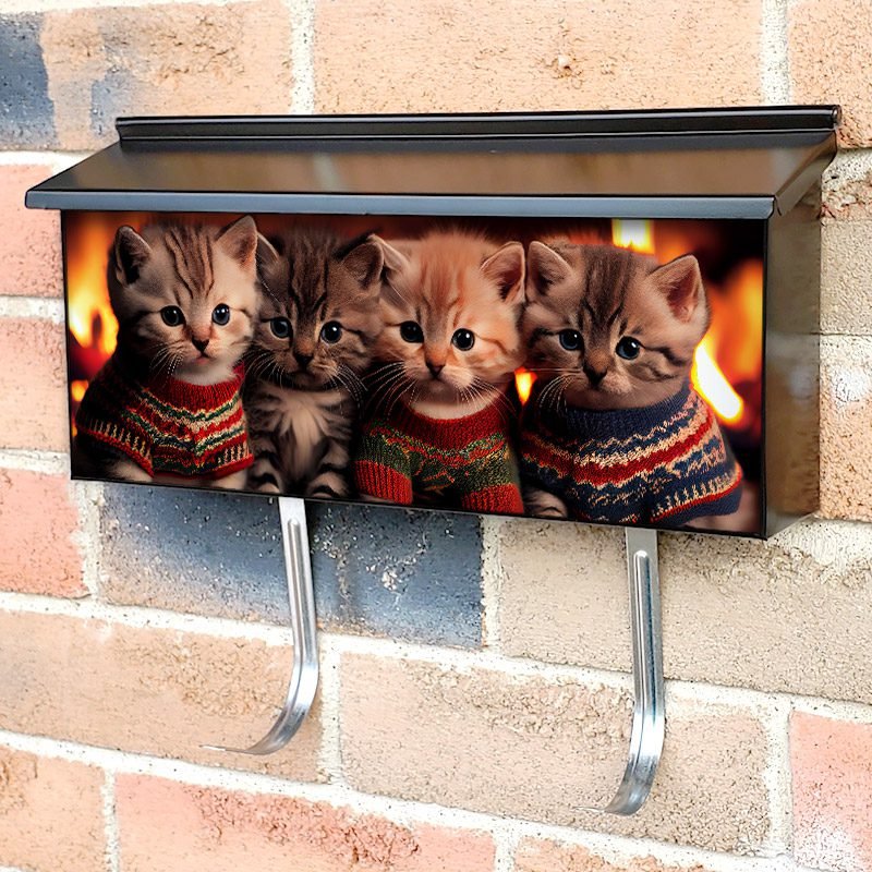 Applying your A Group Of Little Kittens In Christmas Sweaters In Front Of Fireplace townhouse / ranch mailbox cover it’s pretty easy to convert your mailbox to a special and unique item. These covers require a flat surface, so they work with townhouse / ranch mailboxes that do not have any embossed decoration or signs. Magnetic mailbox covers work with steel boxes, for aluminum and plastic boxes we offer the self-adhesive vinyl covers. In case your mailbox doesn’t work with these covers, you can purchase the preinstalled cover on a brand new mailbox as well. Also, you can create your custom townhouse / ranch mailbox cover using you own pictures, adding your name, street number, etc.