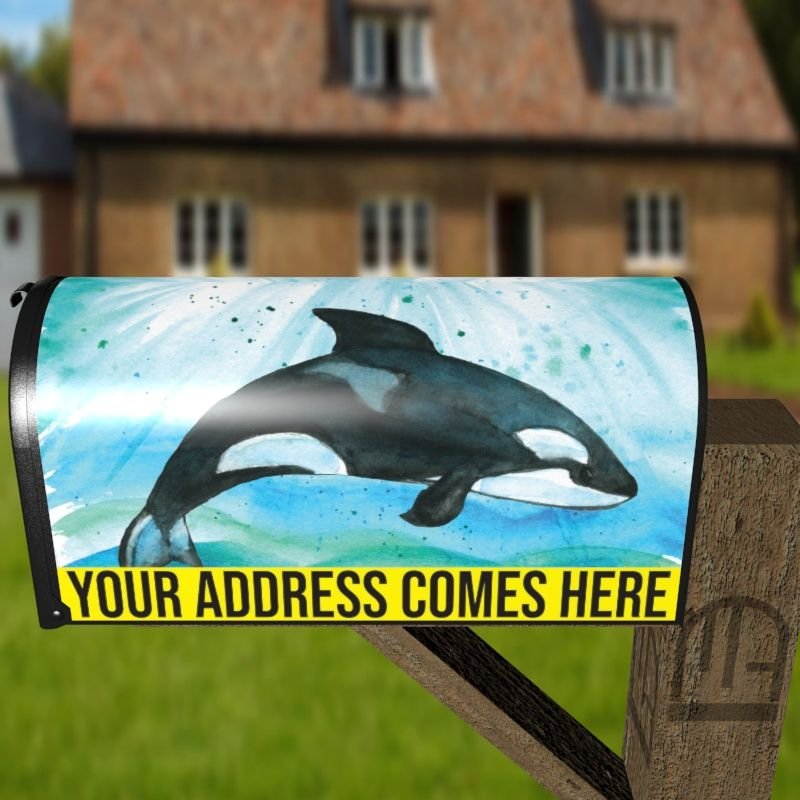 Grab this creative Beautiful Jumping Orca rural/curbside/farm mailbox cover as self adhesive vinyl or magnetic cover. Our magnetic covers have the magnetic surface under the whole design, not only two magnet strips like in cheaper products. We also offer both the self adhesive and the magnetic covers with regular opaque white vinyl or reflective vinyl which works the same way as the licence plates or road signs; pretty visible at night. We make these covers for both large and small mailboxes.