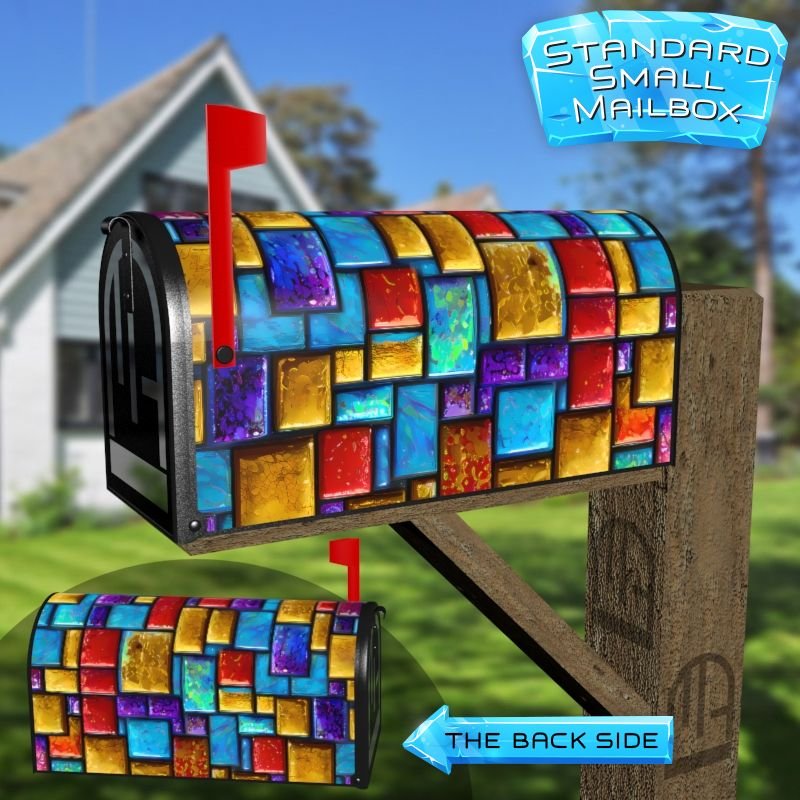 Dressing up your rural farm mailbox with the Beautiful Mosaic Pattern #1 mailbox cover is an easy way to convert it into a unique and special item. These covers require a smooth surface, so they are compatible with rural farm mailboxes that do not have any embossed decorations or signs. Magnetic mailbox covers work with steel boxes only, while self-adhesive vinyl covers are available for aluminum, plastic and steel boxes. If your mailbox is not compatible with these covers, you can purchase a brand new mailbox with a preinstalled cover. Additionally, you have the option to create a custom rural farm mailbox cover with your own pictures, name, street number, etc.