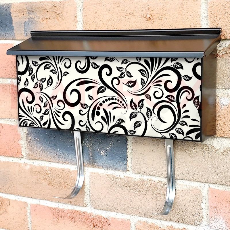 Applying your Black and White Folk Flowers townhouse / ranch mailbox cover it’s pretty easy to convert your mailbox to a special and unique item. These covers require a flat surface, so they work with townhouse / ranch mailboxes that do not have any embossed decoration or signs. Magnetic mailbox covers work with steel boxes, for aluminum and plastic boxes we offer the self-adhesive vinyl covers. In case your mailbox doesn’t work with these covers, you can purchase the preinstalled cover on a brand new mailbox as well. Also, you can create your custom townhouse / ranch mailbox cover using you own pictures, adding your name, street number, etc.