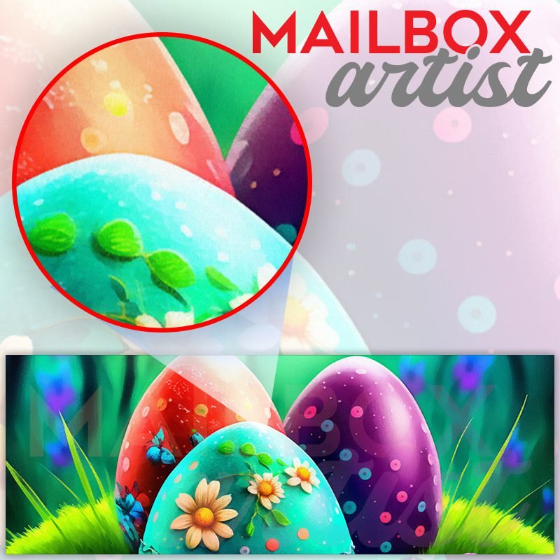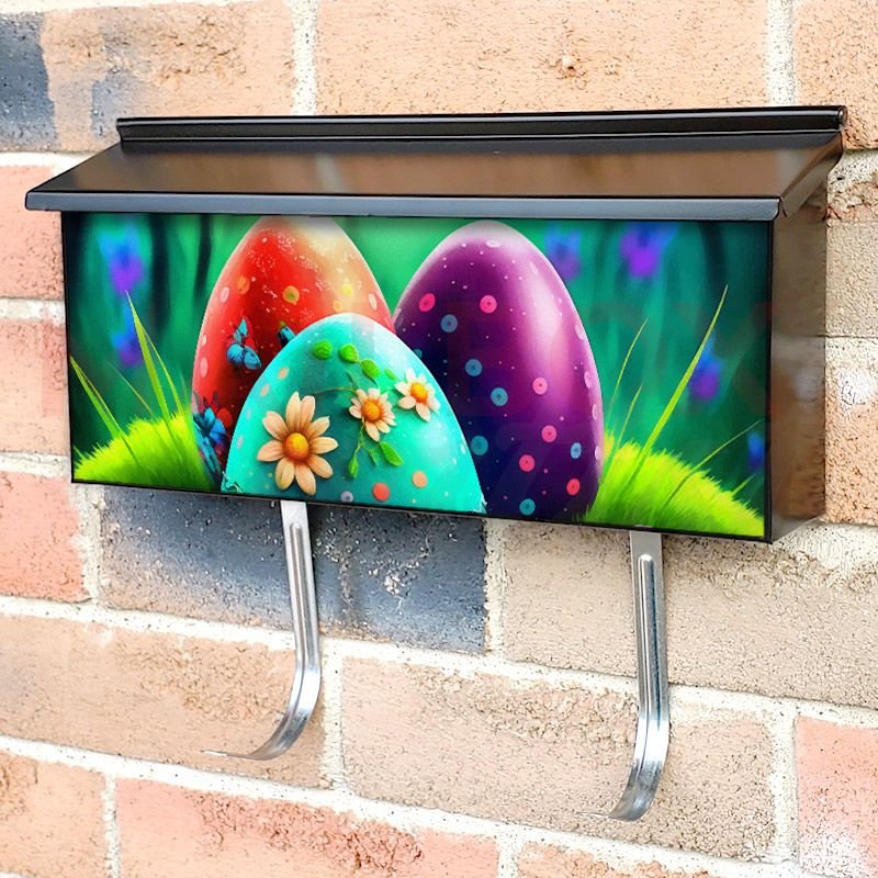 Applying your Colorful Easter Eggs and Flowers townhouse / ranch mailbox cover it’s pretty easy to convert your mailbox to a special and unique item. These covers require a flat surface, so they work with townhouse / ranch mailboxes that do not have any embossed decoration or signs. Magnetic mailbox covers work with steel boxes, for aluminum and plastic boxes we offer the self-adhesive vinyl covers. In case your mailbox doesn’t work with these covers, you can purchase the preinstalled cover on a brand new mailbox as well. Also, you can create your custom townhouse / ranch mailbox cover using you own pictures, adding your name, street number, etc.