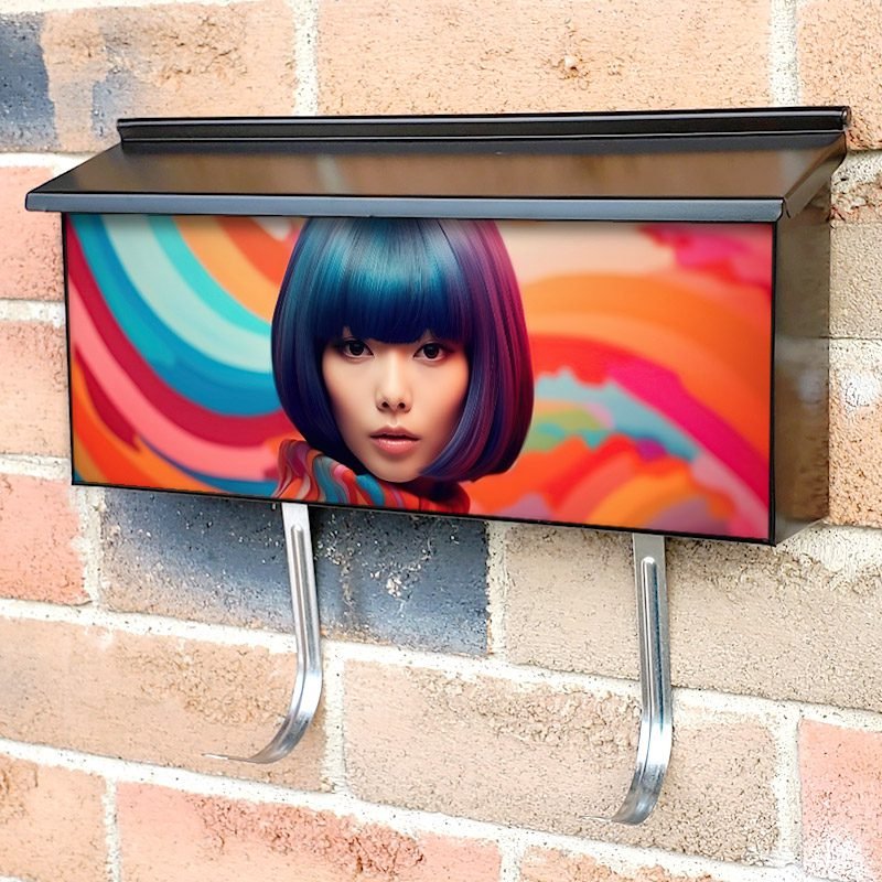 Applying your Colorful Fashion Portrait Lady townhouse / ranch mailbox cover it’s pretty easy to convert your mailbox to a special and unique item. These covers require a flat surface, so they work with townhouse / ranch mailboxes that do not have any embossed decoration or signs. Magnetic mailbox covers work with steel boxes, for aluminum and plastic boxes we offer the self-adhesive vinyl covers. In case your mailbox doesn’t work with these covers, you can purchase the preinstalled cover on a brand new mailbox as well. Also, you can create your custom townhouse / ranch mailbox cover using you own pictures, adding your name, street number, etc.