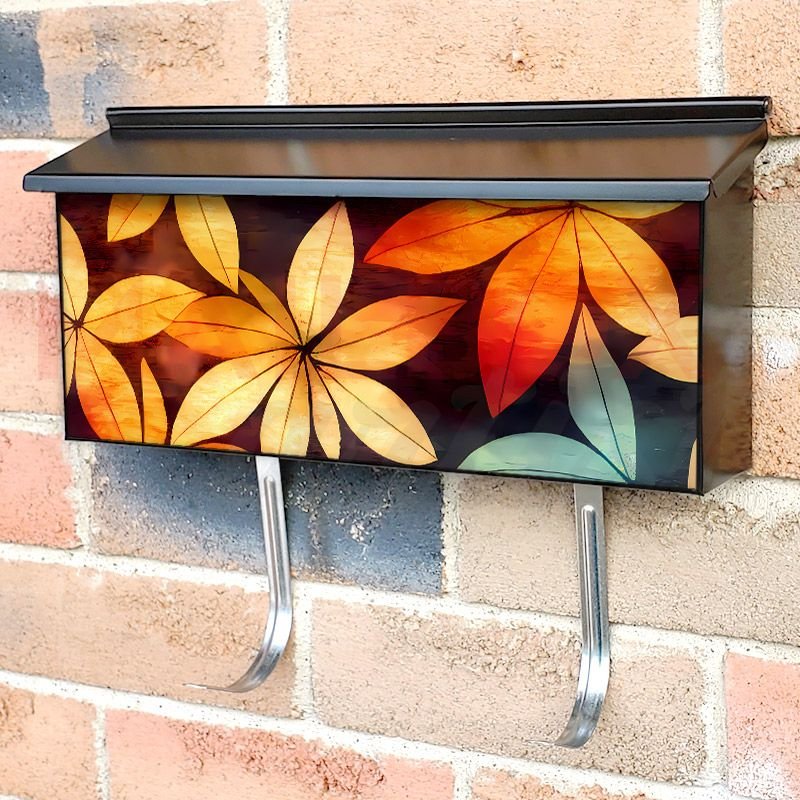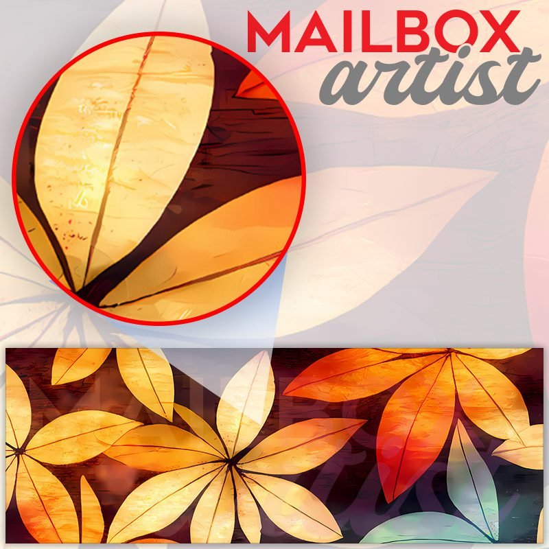 Applying your Colorful Leaves #2 townhouse / ranch mailbox cover it’s pretty easy to convert your mailbox to a special and unique item. These covers require a flat surface, so they work with townhouse / ranch mailboxes that do not have any embossed decoration or signs. Magnetic mailbox covers work with steel boxes, for aluminum and plastic boxes we offer the self-adhesive vinyl covers. In case your mailbox doesn’t work with these covers, you can purchase the preinstalled cover on a brand new mailbox as well. Also, you can create your custom townhouse / ranch mailbox cover using you own pictures, adding your name, street number, etc.