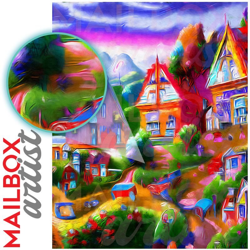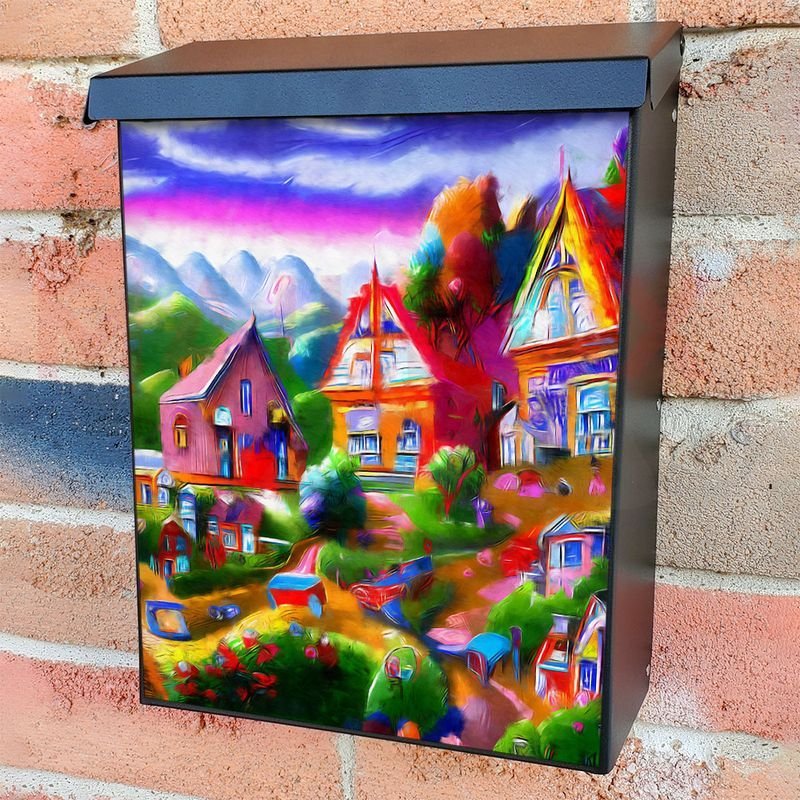 With this Cute Colorful Town colonial mailbox cover it’s pretty easy to convert your mailbox to a special and unique item. These covers require a flat surface, so they work with colonial mailboxes that do not have any embossed decoration or signs. In case your mailbox doesn’t work with these covers, you can purchase the preinstalled cover on a brand new mailbox as well. Also, you can create your custom colonial mailbox cover using you own pictures, adding your name, street number, etc.
