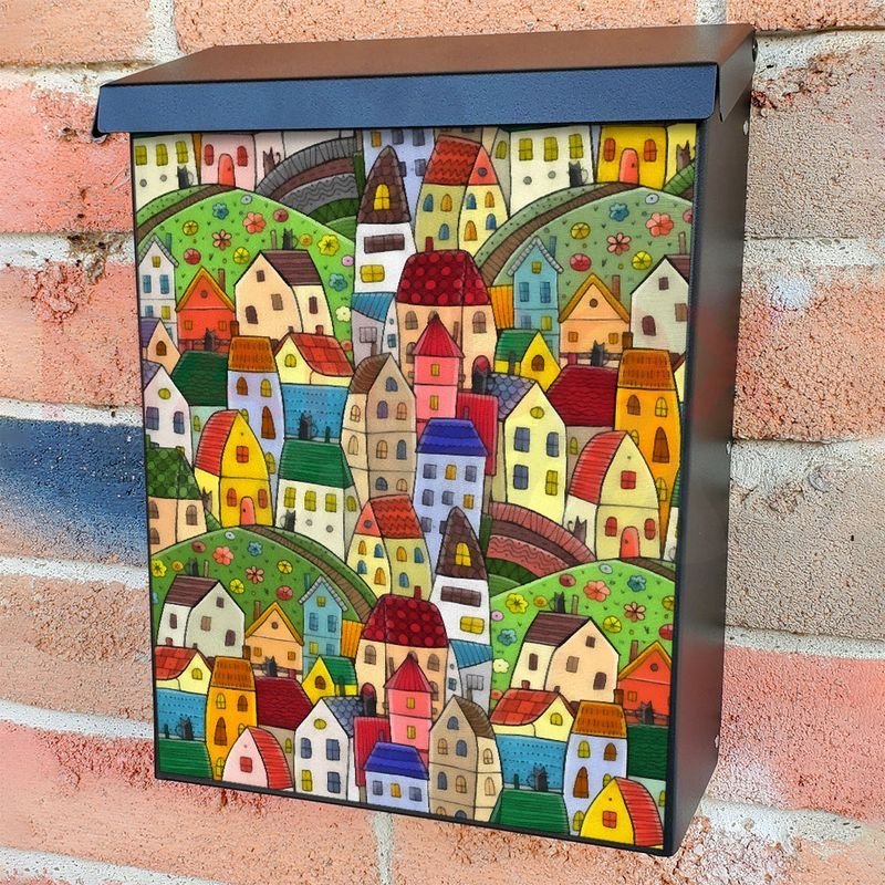 With this Cute Colorful Village colonial mailbox cover it’s pretty easy to convert your mailbox to a special and unique item. These covers require a flat surface, so they work with colonial mailboxes that do not have any embossed decoration or signs. In case your mailbox doesn’t work with these covers, you can purchase the preinstalled cover on a brand new mailbox as well. Also, you can create your custom colonial mailbox cover using you own pictures, adding your name, street number, etc.