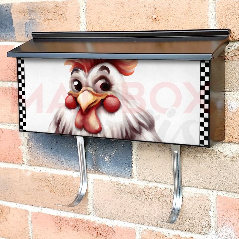 Applying your Cute Funny Rooster townhouse / ranch mailbox cover it’s pretty easy to convert your mailbox to a special and unique item. These covers require a flat surface, so they work with townhouse / ranch mailboxes that do not have any embossed decoration or signs. Magnetic mailbox covers work with steel boxes, for aluminum and plastic boxes we offer the self-adhesive vinyl covers. In case your mailbox doesn’t work with these covers, you can purchase the preinstalled cover on a brand new mailbox as well. Also, you can create your custom townhouse / ranch mailbox cover using you own pictures, adding your name, street number, etc.