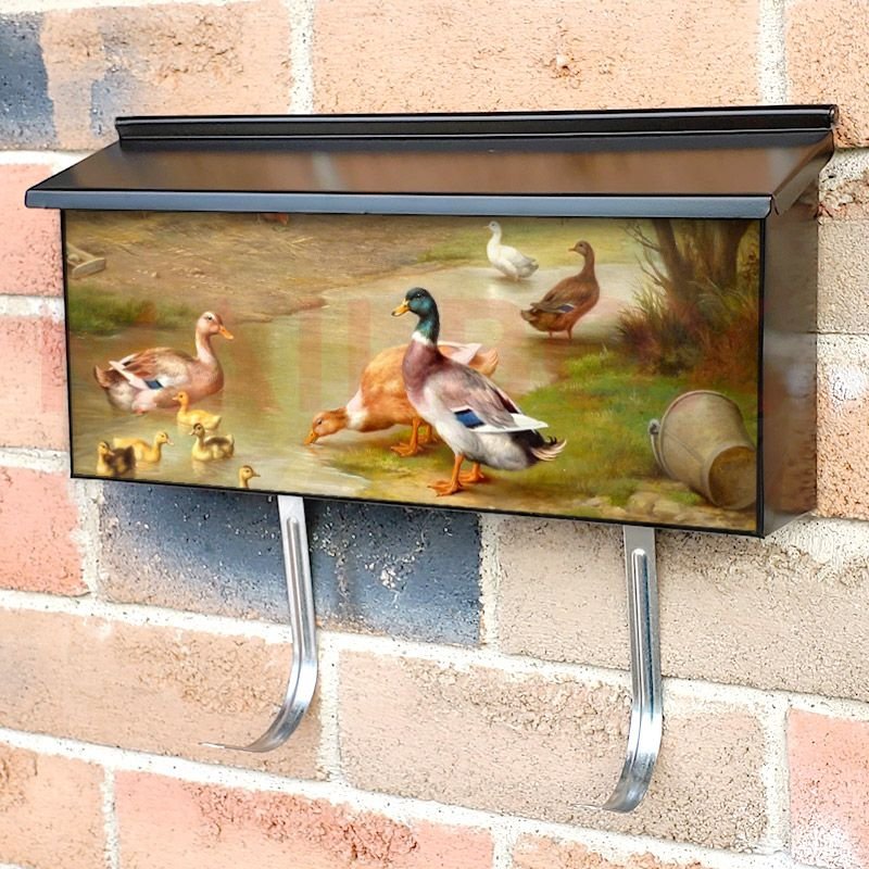 Applying your Ducks by Stream townhouse / ranch mailbox cover it’s pretty easy to convert your mailbox to a special and unique item. These covers require a flat surface, so they work with townhouse / ranch mailboxes that do not have any embossed decoration or signs. Magnetic mailbox covers work with steel boxes, for aluminum and plastic boxes we offer the self-adhesive vinyl covers. In case your mailbox doesn’t work with these covers, you can purchase the preinstalled cover on a brand new mailbox as well. Also, you can create your custom townhouse / ranch mailbox cover using you own pictures, adding your name, street number, etc.