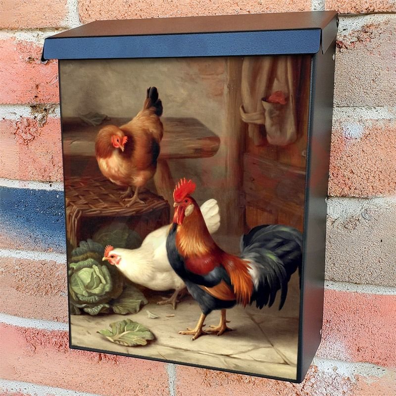 This Farmhouse Chickens and Rooster mailbox design was created by Krisztina Soos
