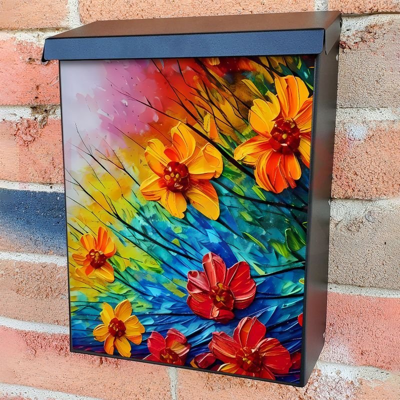 With this Flowers in the Sunset colonial mailbox cover it’s pretty easy to convert your mailbox to a special and unique item. These covers require a flat surface, so they work with colonial mailboxes that do not have any embossed decoration or signs. In case your mailbox doesn’t work with these covers, you can purchase the preinstalled cover on a brand new mailbox as well. Also, you can create your custom colonial mailbox cover using you own pictures, adding your name, street number, etc.
