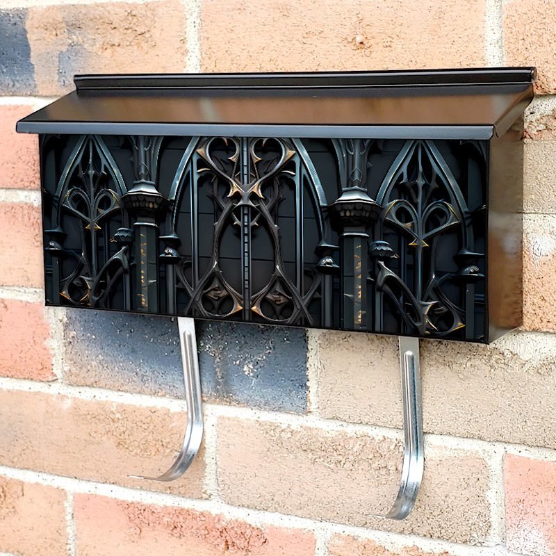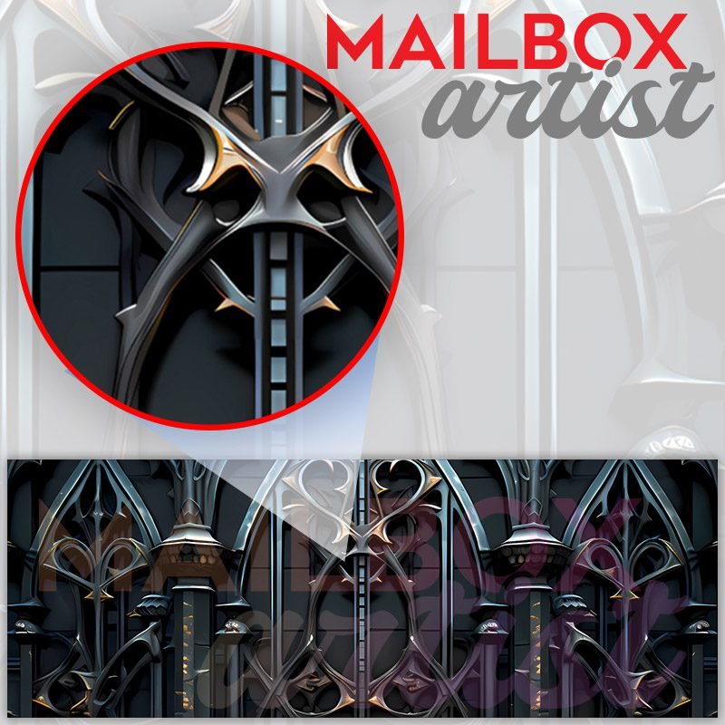 Applying your Forged Iron Gate Design #2 townhouse / ranch mailbox cover it’s pretty easy to convert your mailbox to a special and unique item. These covers require a flat surface, so they work with townhouse / ranch mailboxes that do not have any embossed decoration or signs. Magnetic mailbox covers work with steel boxes, for aluminum and plastic boxes we offer the self-adhesive vinyl covers. In case your mailbox doesn’t work with these covers, you can purchase the preinstalled cover on a brand new mailbox as well. Also, you can create your custom townhouse / ranch mailbox cover using you own pictures, adding your name, street number, etc.