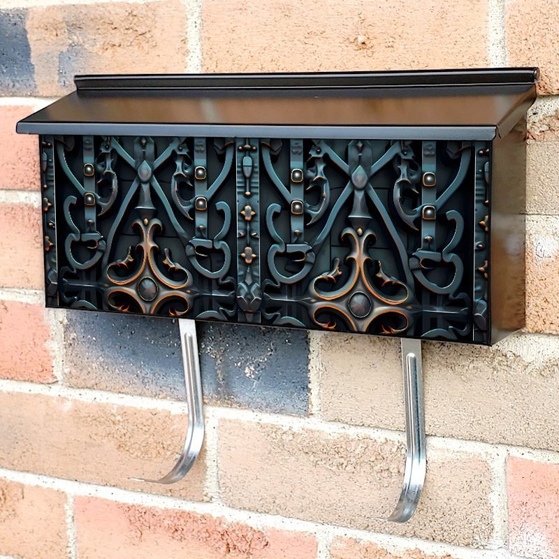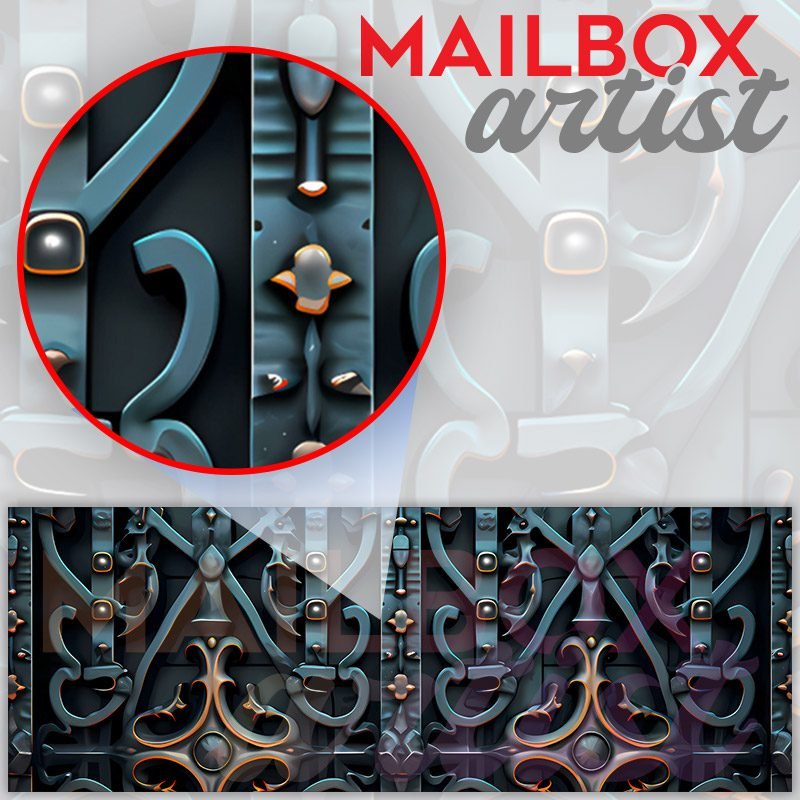 Applying your Forged Iron Gate Design #3 townhouse / ranch mailbox cover it’s pretty easy to convert your mailbox to a special and unique item. These covers require a flat surface, so they work with townhouse / ranch mailboxes that do not have any embossed decoration or signs. Magnetic mailbox covers work with steel boxes, for aluminum and plastic boxes we offer the self-adhesive vinyl covers. In case your mailbox doesn’t work with these covers, you can purchase the preinstalled cover on a brand new mailbox as well. Also, you can create your custom townhouse / ranch mailbox cover using you own pictures, adding your name, street number, etc.