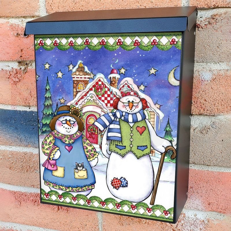 With this Grandma and Grandpa Snowman #2 colonial mailbox cover it’s pretty easy to convert your mailbox to a special and unique item. These covers require a flat surface, so they work with colonial mailboxes that do not have any embossed decoration or signs. In case your mailbox doesn’t work with these covers, you can purchase the preinstalled cover on a brand new mailbox as well. Also, you can create your custom colonial mailbox cover using you own pictures, adding your name, street number, etc.