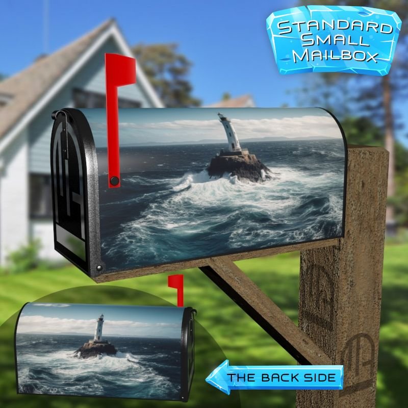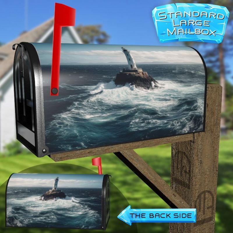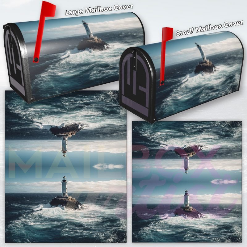 Dressing up your rural farm mailbox with the Guidance Lighthouse Beacon On Famous Coastline mailbox cover is an easy way to convert it into a unique and special item. These covers require a smooth surface, so they are compatible with rural farm mailboxes that do not have any embossed decorations or signs. Magnetic mailbox covers work with steel boxes only, while self-adhesive vinyl covers are available for aluminum, plastic and steel boxes. If your mailbox is not compatible with these covers, you can purchase a brand new mailbox with a preinstalled cover. Additionally, you have the option to create a custom rural farm mailbox cover with your own pictures, name, street number, etc.