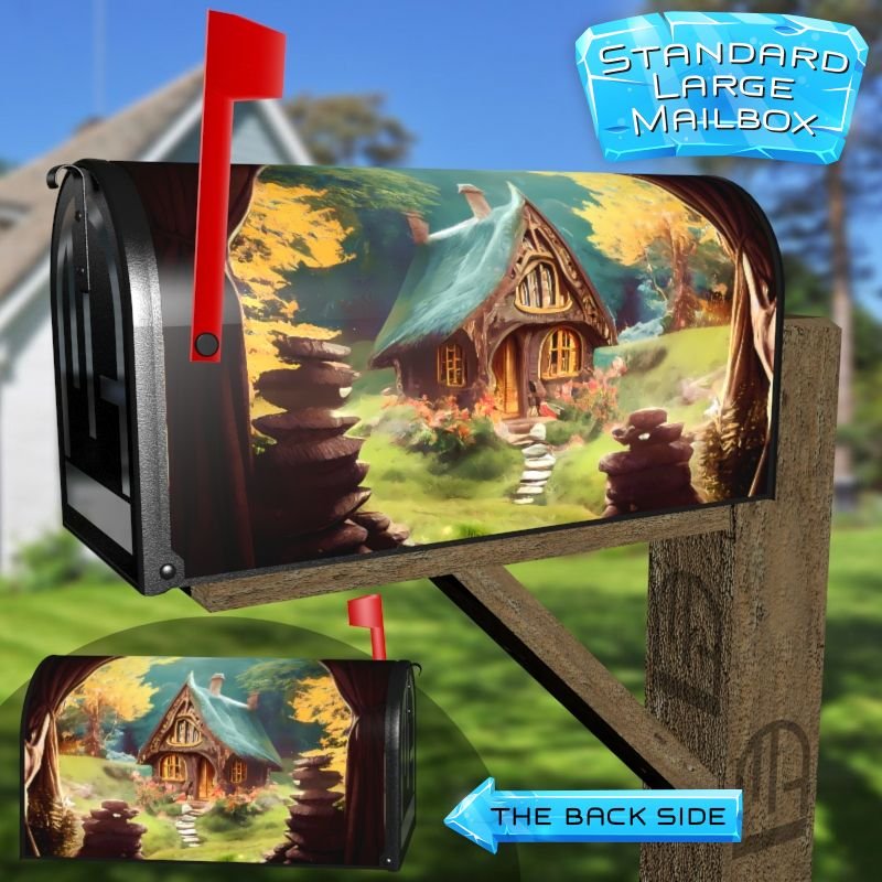 Dressing up your rural farm mailbox with the Little Hobbit House mailbox cover is an easy way to convert it into a unique and special item. These covers require a smooth surface, so they are compatible with rural farm mailboxes that do not have any embossed decorations or signs. Magnetic mailbox covers work with steel boxes only, while self-adhesive vinyl covers are available for aluminum, plastic and steel boxes. If your mailbox is not compatible with these covers, you can purchase a brand new mailbox with a preinstalled cover. Additionally, you have the option to create a custom rural farm mailbox cover with your own pictures, name, street number, etc.
