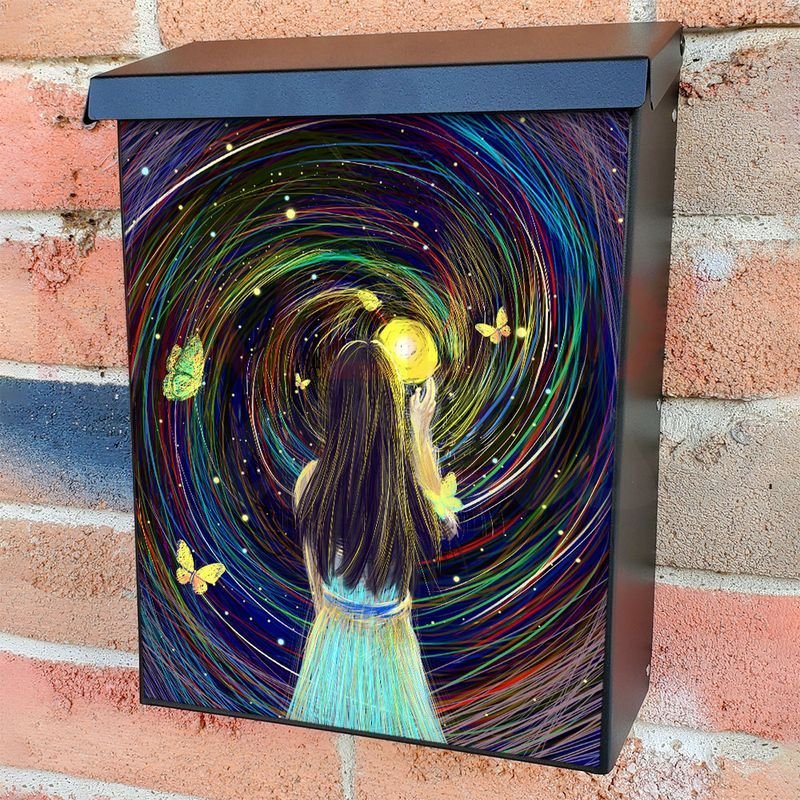 With this Looking Into the Future colonial mailbox cover it’s pretty easy to convert your mailbox to a special and unique item. These covers require a flat surface, so they work with colonial mailboxes that do not have any embossed decoration or signs. In case your mailbox doesn’t work with these covers, you can purchase the preinstalled cover on a brand new mailbox as well. Also, you can create your custom colonial mailbox cover using you own pictures, adding your name, street number, etc.