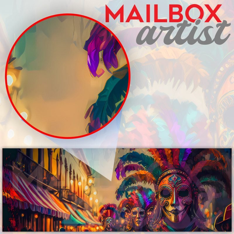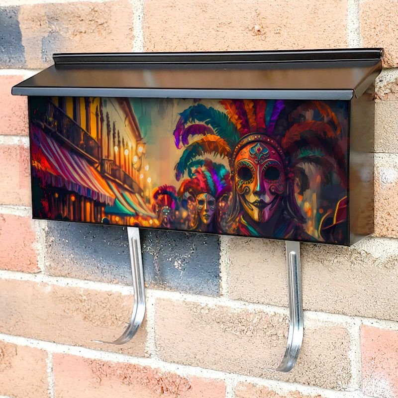 Applying your Mardi Gras Carnival #1 townhouse / ranch mailbox cover it’s pretty easy to convert your mailbox to a special and unique item. These covers require a flat surface, so they work with townhouse / ranch mailboxes that do not have any embossed decoration or signs. Magnetic mailbox covers work with steel boxes, for aluminum and plastic boxes we offer the self-adhesive vinyl covers. In case your mailbox doesn’t work with these covers, you can purchase the preinstalled cover on a brand new mailbox as well. Also, you can create your custom townhouse / ranch mailbox cover using you own pictures, adding your name, street number, etc.