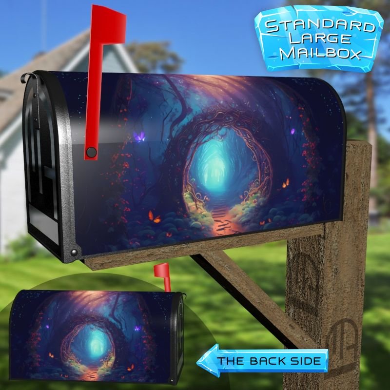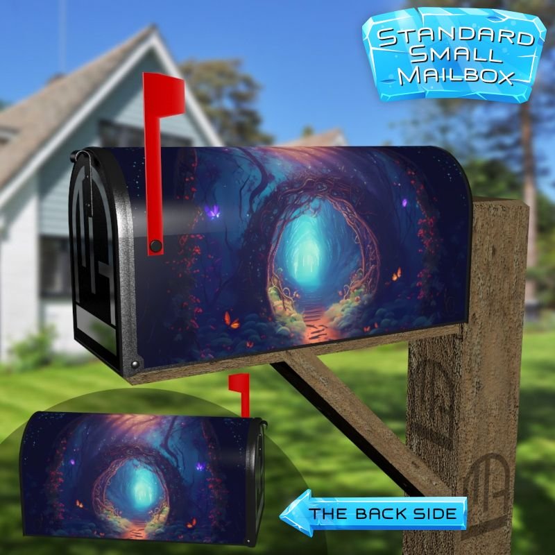 Dressing up your rural farm mailbox with the Mystical Forest Path mailbox cover is an easy way to convert it into a unique and special item. These covers require a smooth surface, so they are compatible with rural farm mailboxes that do not have any embossed decorations or signs. Magnetic mailbox covers work with steel boxes only, while self-adhesive vinyl covers are available for aluminum, plastic and steel boxes. If your mailbox is not compatible with these covers, you can purchase a brand new mailbox with a preinstalled cover. Additionally, you have the option to create a custom rural farm mailbox cover with your own pictures, name, street number, etc.