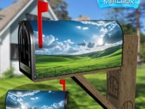 Dressing up your rural farm mailbox with the Northern Lights Sky Magical View mailbox cover is an easy way to convert it into a unique and special item. These covers require a smooth surface, so they are compatible with rural farm mailboxes that do not have any embossed decorations or signs. Magnetic mailbox covers work with steel boxes only, while self-adhesive vinyl covers are available for aluminum, plastic and steel boxes. If your mailbox is not compatible with these covers, you can purchase a brand new mailbox with a preinstalled cover. Additionally, you have the option to create a custom rural farm mailbox cover with your own pictures, name, street number, etc.