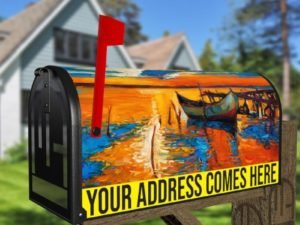 Dressing up your rural farm mailbox with the Panoramic Mountain Lake At Sunset mailbox cover is an easy way to convert it into a unique and special item. These covers require a smooth surface, so they are compatible with rural farm mailboxes that do not have any embossed decorations or signs. Magnetic mailbox covers work with steel boxes only, while self-adhesive vinyl covers are available for aluminum, plastic and steel boxes. If your mailbox is not compatible with these covers, you can purchase a brand new mailbox with a preinstalled cover. Additionally, you have the option to create a custom rural farm mailbox cover with your own pictures, name, street number, etc.