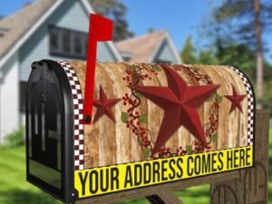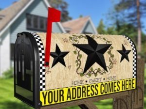 Grab this creative Primitive Country Folk Barn Star #2 – Welcome rural/curbside/farm mailbox cover as self adhesive vinyl or magnetic cover. Our magnetic covers have the magnetic surface under the whole design, not only two magnet strips like in cheaper products. We also offer both the self adhesive and the magnetic covers with regular opaque white vinyl or reflective vinyl which works the same way as the licence plates or road signs; pretty visible at night. We make these covers for both large and small mailboxes.