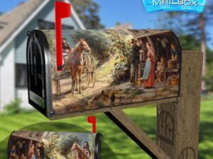 With this Retro Van In Mountain Landscape Road Trip 2 colonial mailbox cover it’s pretty easy to convert your mailbox to a special and unique item. These covers require a flat surface, so they work with colonial mailboxes that do not have any embossed decoration or signs. Magnetic mailbox covers work with steel colonial boxes only, while self-adhesive vinyl covers are available for aluminum, plastic and steel boxes. We also offer both self-adhesive and magnetic covers with regular opaque white vinyl or reflective vinyl, which works similarly to license plates or road signs. The reflective option makes the entire cover’s surface reflective, ensuring visibility at night. In case your mailbox doesn’t work with these covers, you can purchase the preinstalled cover on a brand new mailbox as well. Also, you can create your custom colonial mailbox cover using you own pictures, adding your name, street number, etc.