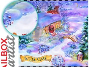This Riverside Cottage in the Winter mailbox design was created by Krisztina Soos