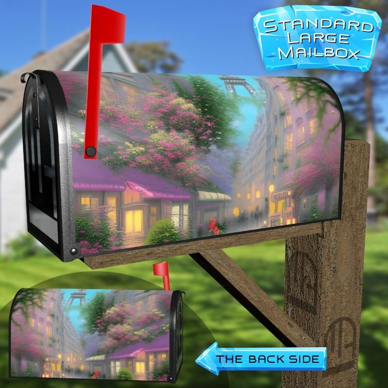 Dressing up your rural farm mailbox with the Springtime in Paris mailbox cover is an easy way to convert it into a unique and special item. These covers require a smooth surface, so they are compatible with rural farm mailboxes that do not have any embossed decorations or signs. Magnetic mailbox covers work with steel boxes only, while self-adhesive vinyl covers are available for aluminum, plastic and steel boxes. If your mailbox is not compatible with these covers, you can purchase a brand new mailbox with a preinstalled cover. Additionally, you have the option to create a custom rural farm mailbox cover with your own pictures, name, street number, etc.