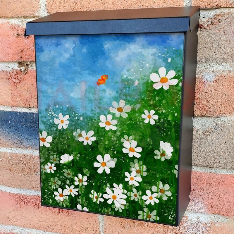With this Summer Garden and a Butterly colonial mailbox cover it’s pretty easy to convert your mailbox to a special and unique item. These covers require a flat surface, so they work with colonial mailboxes that do not have any embossed decoration or signs. In case your mailbox doesn’t work with these covers, you can purchase the preinstalled cover on a brand new mailbox as well. Also, you can create your custom colonial mailbox cover using you own pictures, adding your name, street number, etc.