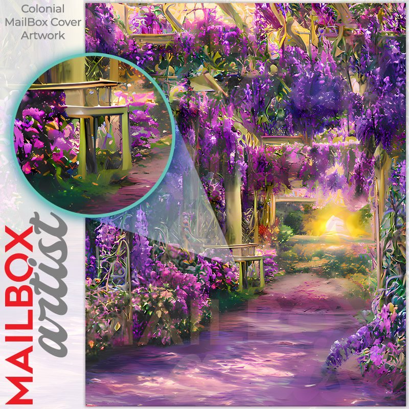 With this The Lilac Tunnel colonial mailbox cover it’s pretty easy to convert your mailbox to a special and unique item. These covers require a flat surface, so they work with colonial mailboxes that do not have any embossed decoration or signs. Magnetic mailbox covers work with steel colonial boxes only, while self-adhesive vinyl covers are available for aluminum, plastic and steel boxes. We also offer both self-adhesive and magnetic covers with regular opaque white vinyl or reflective vinyl, which works similarly to license plates or road signs. The reflective option makes the entire cover’s surface reflective, ensuring visibility at night. In case your mailbox doesn’t work with these covers, you can purchase the preinstalled cover on a brand new mailbox as well. Also, you can create your custom colonial mailbox cover using you own pictures, adding your name, street number, etc.
