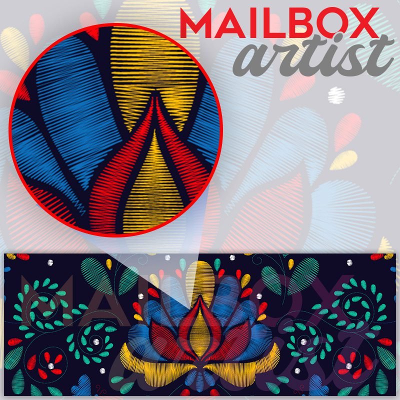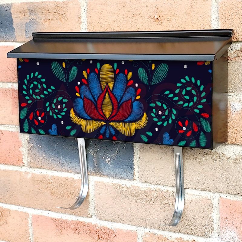Applying your Traditional Embroidery Pattern #2 townhouse / ranch mailbox cover it’s pretty easy to convert your mailbox to a special and unique item. These covers require a flat surface, so they work with townhouse / ranch mailboxes that do not have any embossed decoration or signs. Magnetic mailbox covers work with steel boxes, for aluminum and plastic boxes we offer the self-adhesive vinyl covers. In case your mailbox doesn’t work with these covers, you can purchase the preinstalled cover on a brand new mailbox as well. Also, you can create your custom townhouse / ranch mailbox cover using you own pictures, adding your name, street number, etc.