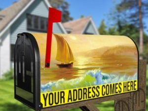 Applying your Tropical Island with Palm Trees in the Ocean at Sunset townhouse / ranch mailbox cover it’s pretty easy to convert your mailbox to a special and unique item. These covers require a flat surface, so they work with townhouse / ranch mailboxes that do not have any embossed decoration or signs. Magnetic mailbox covers work with steel boxes, for aluminum and plastic boxes we offer the self-adhesive vinyl covers. In case your mailbox doesn’t work with these covers, you can purchase the preinstalled cover on a brand new mailbox as well. Also, you can create your custom townhouse / ranch mailbox cover using you own pictures, adding your name, street number, etc.