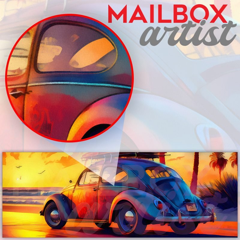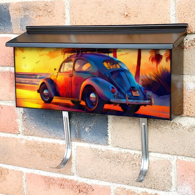 Applying your Volkswagen Beetle on the Beach #1 townhouse / ranch mailbox cover it’s pretty easy to convert your mailbox to a special and unique item. These covers require a flat surface, so they work with townhouse / ranch mailboxes that do not have any embossed decoration or signs. Magnetic mailbox covers work with steel boxes, for aluminum and plastic boxes we offer the self-adhesive vinyl covers. In case your mailbox doesn’t work with these covers, you can purchase the preinstalled cover on a brand new mailbox as well. Also, you can create your custom townhouse / ranch mailbox cover using you own pictures, adding your name, street number, etc.