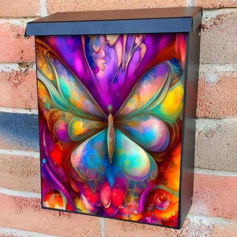 With this Whimsical Butterfly #2 colonial mailbox cover it’s pretty easy to convert your mailbox to a special and unique item. These covers require a flat surface, so they work with colonial mailboxes that do not have any embossed decoration or signs. In case your mailbox doesn’t work with these covers, you can purchase the preinstalled cover on a brand new mailbox as well. Also, you can create your custom colonial mailbox cover using you own pictures, adding your name, street number, etc.